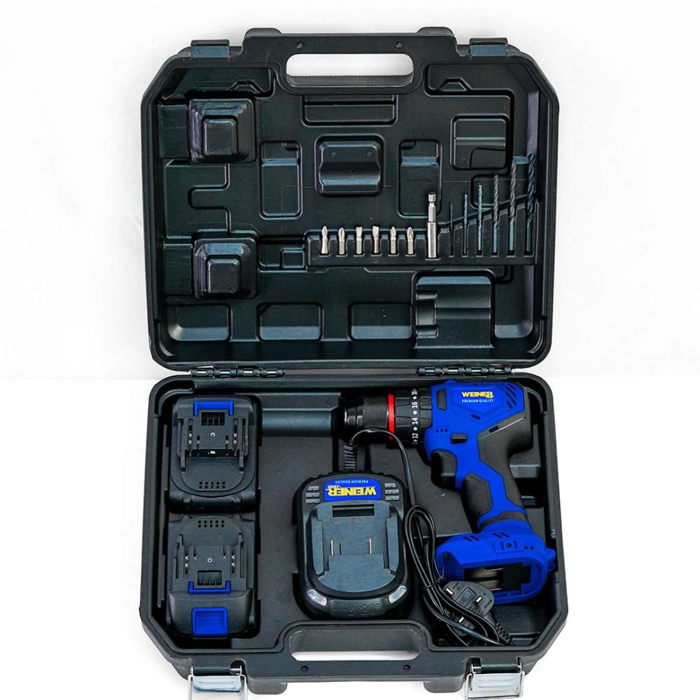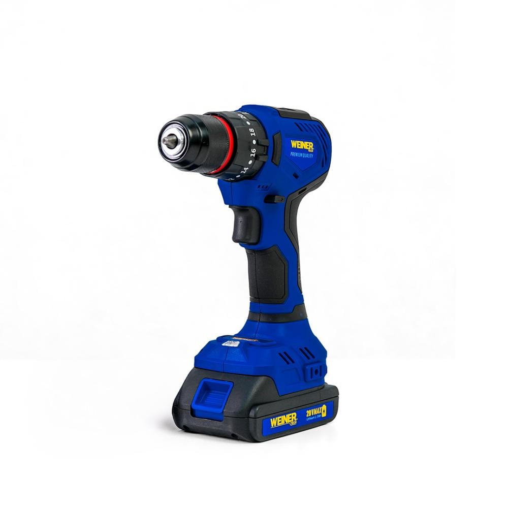 دريل بطارية همر بدون فحمات من WEINER tech يتميز بقوة 20 فولت وعزم دوران عالي 20+1+1، مع