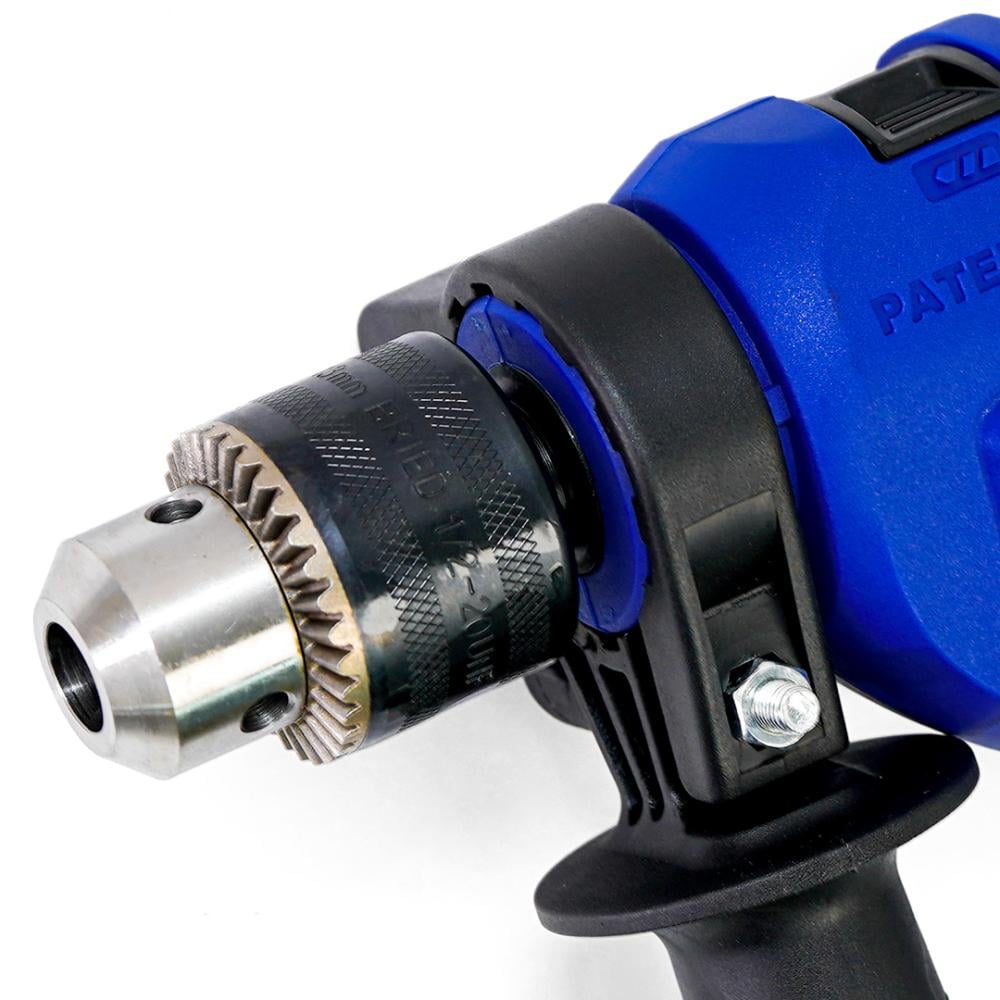 دريل كهربائي دقاق بقوة 550 واط مصمم لإنجاز أعمال الحفر المتنوعة في الخشب، المعدن، والخرسانة. يتميز بمقبض جانبي قابل للدوران 360 درجة، ومفتاح اختيار نمط الدق، إضافة إلى مفتاح تثبيت التشغيل لراحة أكبر في الاستخدام. مزود بسرعة متغيرة لمرونة أكبر، ومقبض مطاطي لثبات أفضل. يأتي مع مجموعة ملحقات تجعل منه خياراً مثالياً للمهنيين وأعمال الصيانة المنزلية.