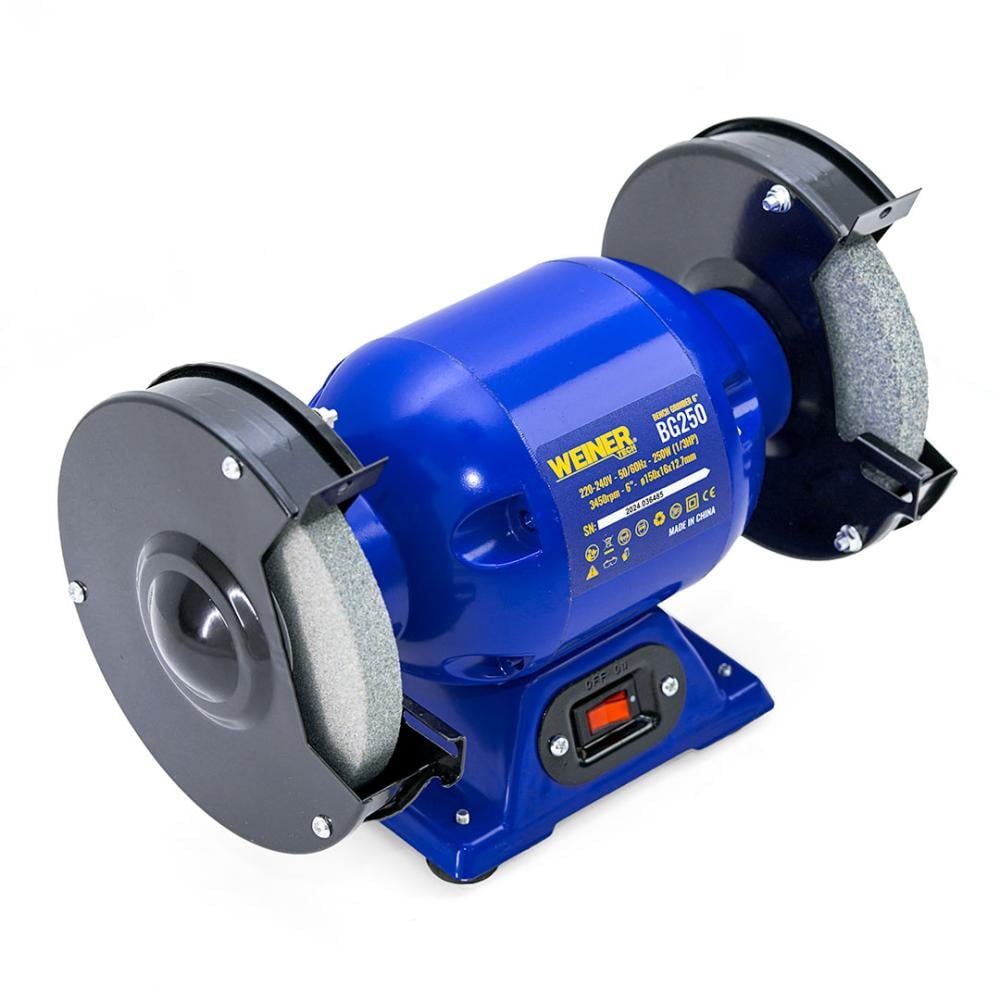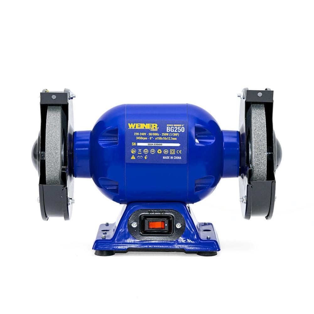 ماكينة جلخ قوية بقياس ٦ إنش، مزودة بمحرك بقدرة ٢٥٠ واط (١/٣ حصان) وسرعة دوران ٣٤٥٠