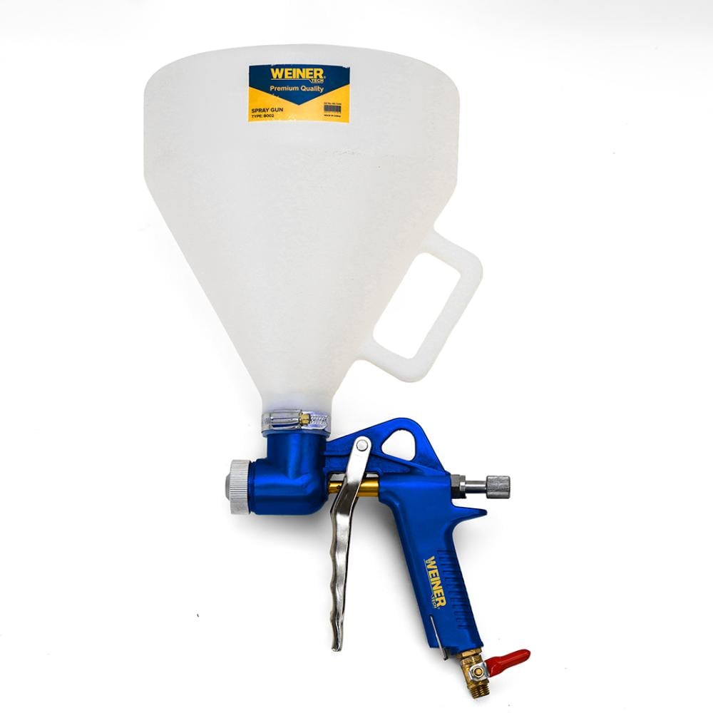 مسدس رش خارجي احترافي من وينر تيك، مصمم لطلاء الأسطح الواسعة والخشنة باستخدام الهواء المضغوط. يتميز بخزان علوي مصنوع من البلاستيك بسعة 5 لترات، وثلاث فوهات بأحجام مختلفة (4.5 ملم، 6 ملم، 8 ملم) لتوفير توزيع مثالي للطلاء. مناسب لأعمال التشطيب والديكور، مثل رش الجدران، الجبس، والخرسانة. سهل الاستخدام وخفيف الوزن، مثالي للدهان عالي الكثافة.